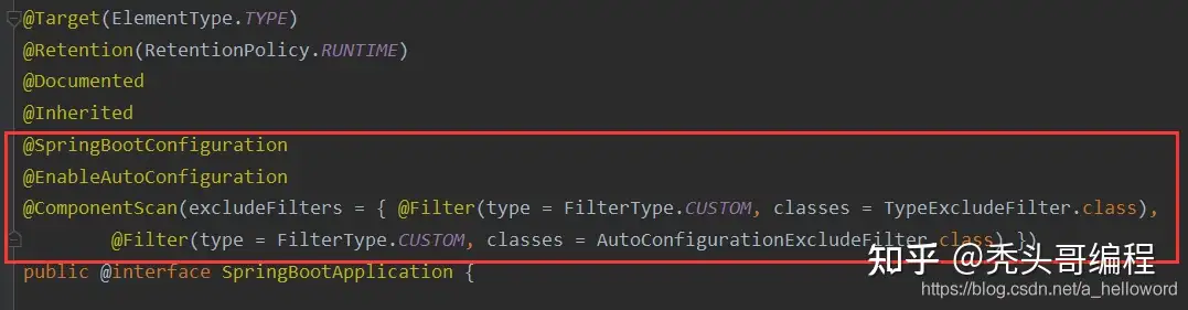 了解了上面的知识,就来学习一下SpringBoot底层是如何帮我们自动配置bean的。从加在启动类上的@SpringBootApplication注解开始。