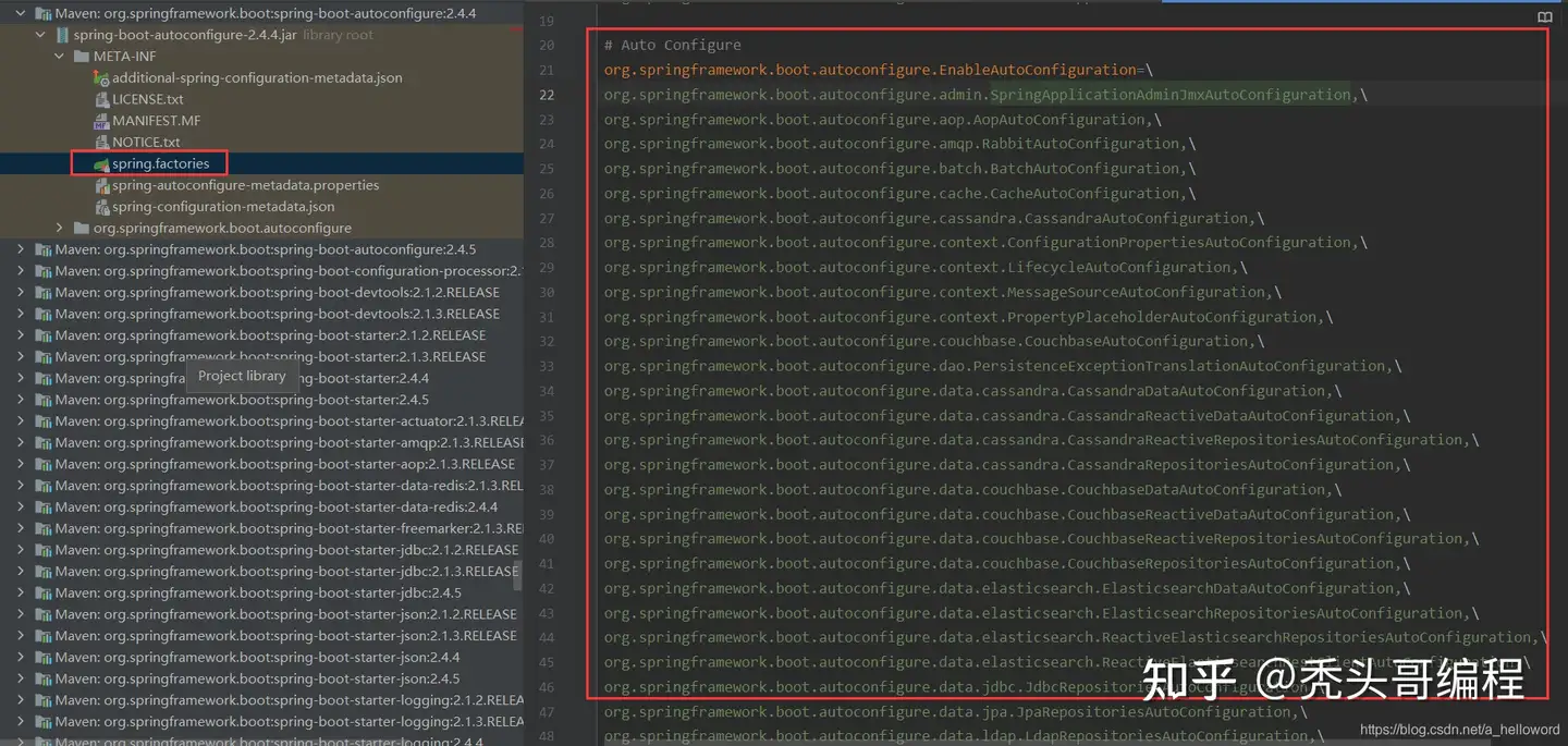 在我测试的项目中,因为启动的时候都是加载的 spring-boot-autoconfigure-2.4.4.jar包中的组件,所以我可以去看看该jar包中的xxxAutoConfiguration的源码。比如AopAutoConfiguration