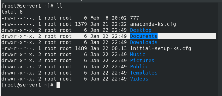 说明:如果我们只想查看当时目录下不包含隐藏文件的所有内容及其详细信息,可直接键入ll(相当于ls -l),效率比较高,如: