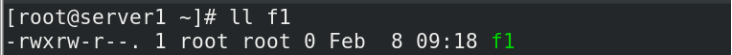 设置文件f1的属主(u)权限为rwx,属组(g)权限为rw,其他人(o)权限为r