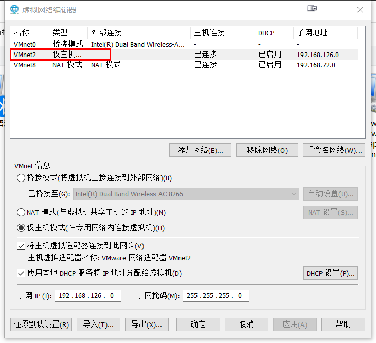 虚机在“仅主机模式“下无法与物理机互访。