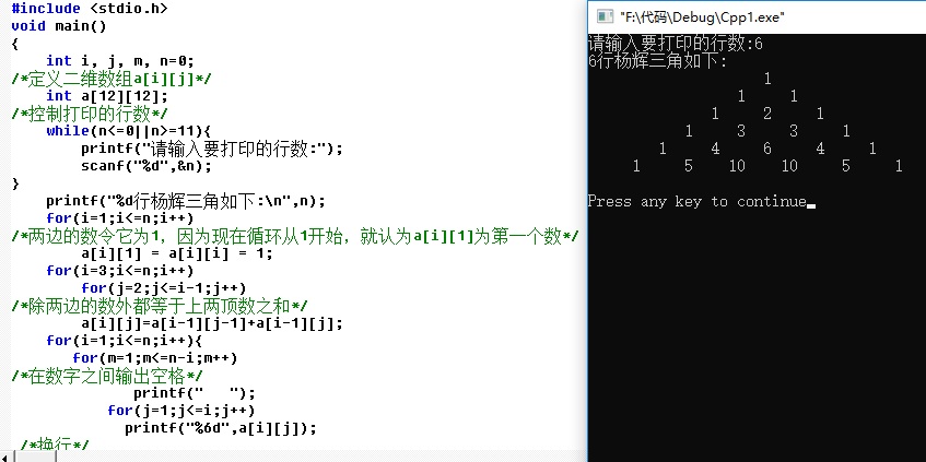 a[i][j]=a[i-1][j-1]+a[i-1][j];