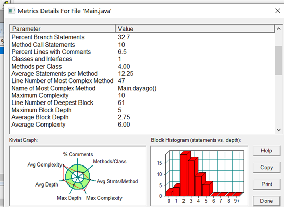 下面是使用SourceMonitor对代码进行圈复杂度分析