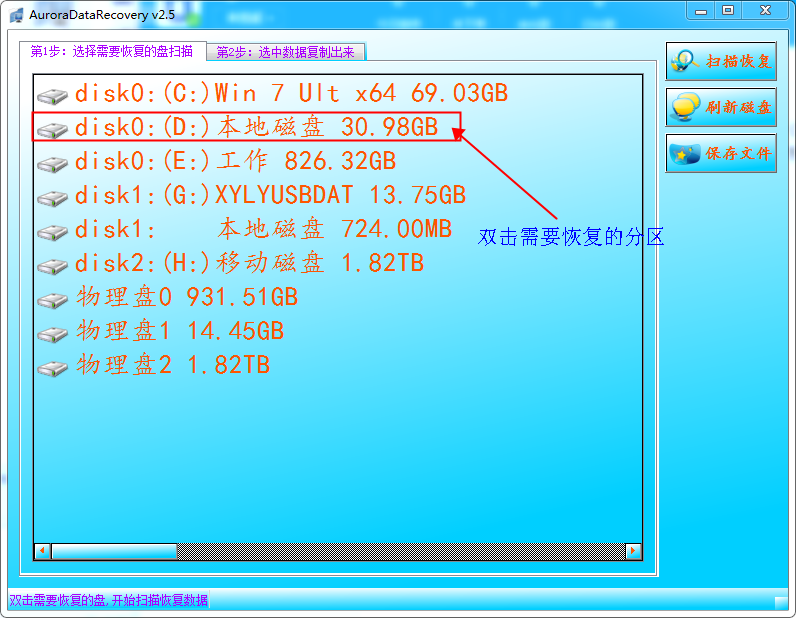 步骤2:软件打开后,直接双击需要恢复数据的盘