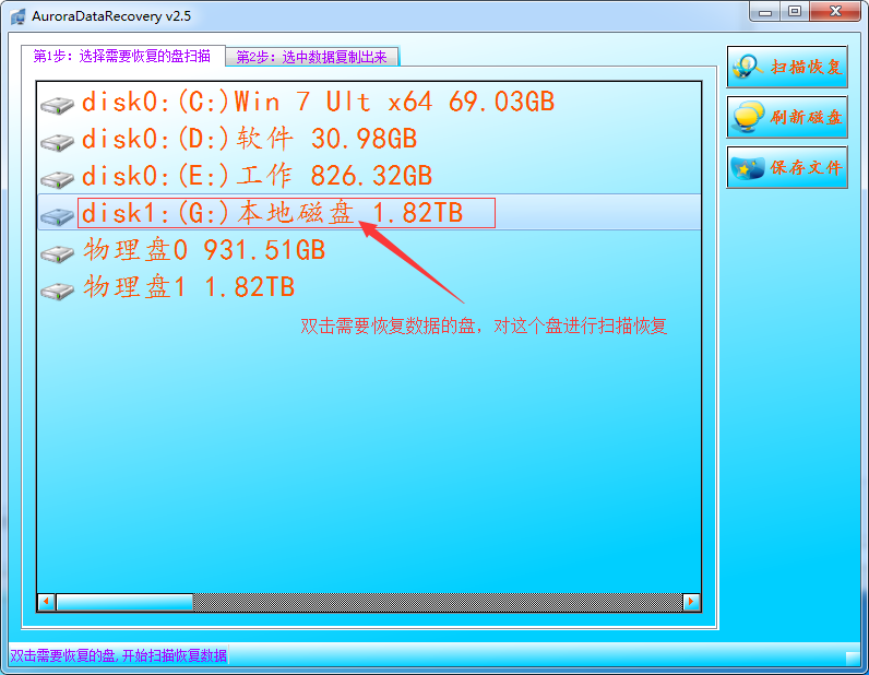 步骤2:程序打开后,直接双击需要恢复数据的盘