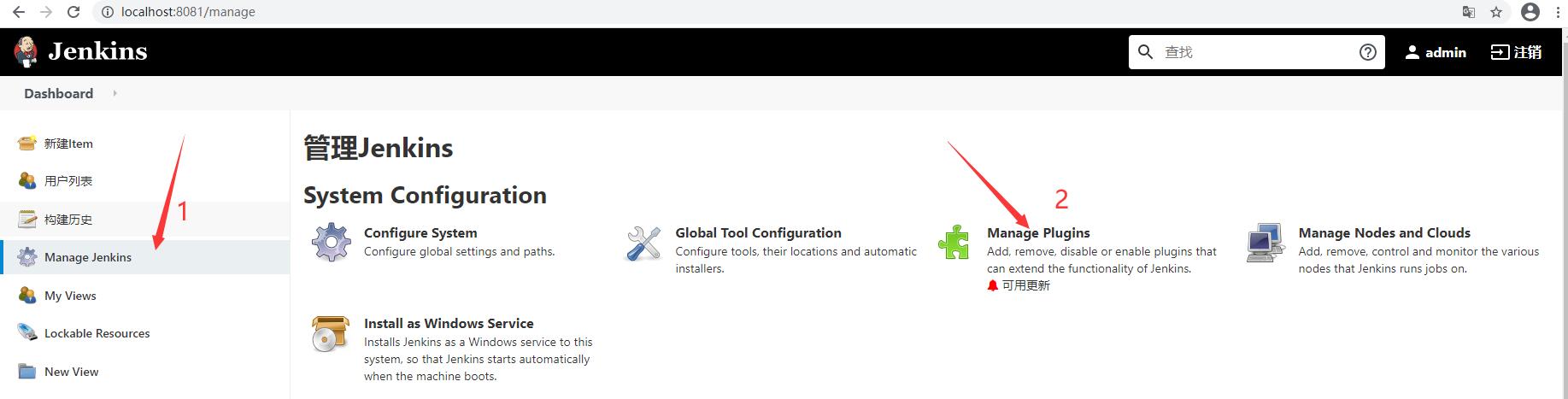 (1)点击Manager Jenkins,找到插件管理,点击进入