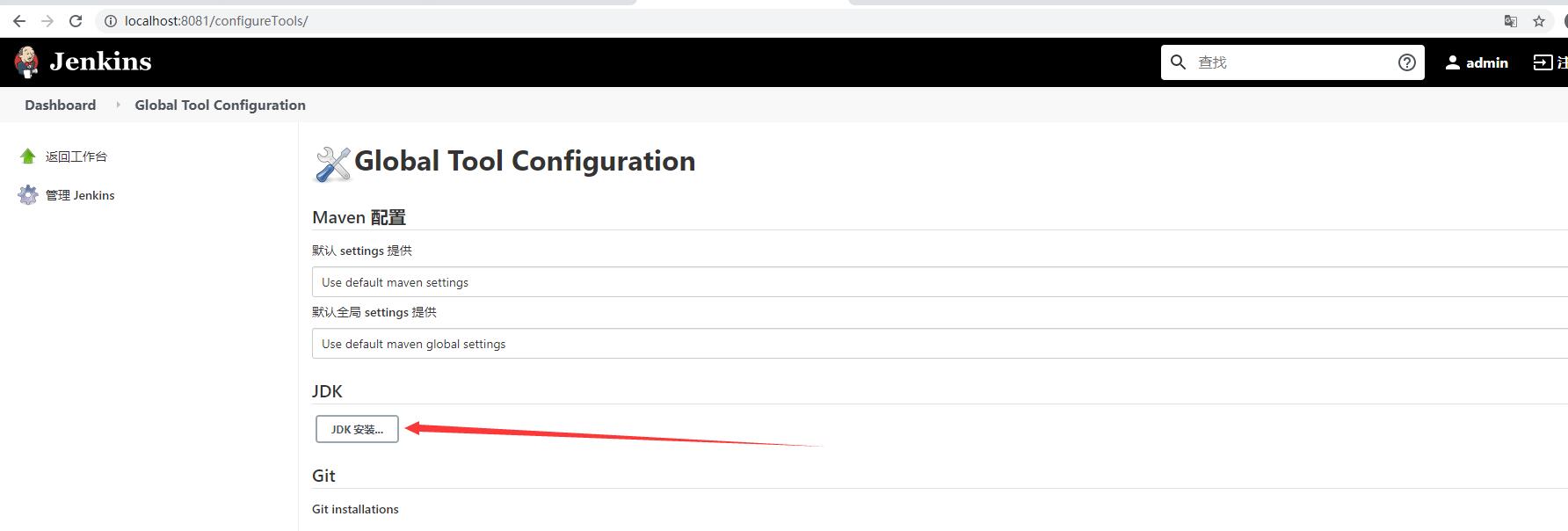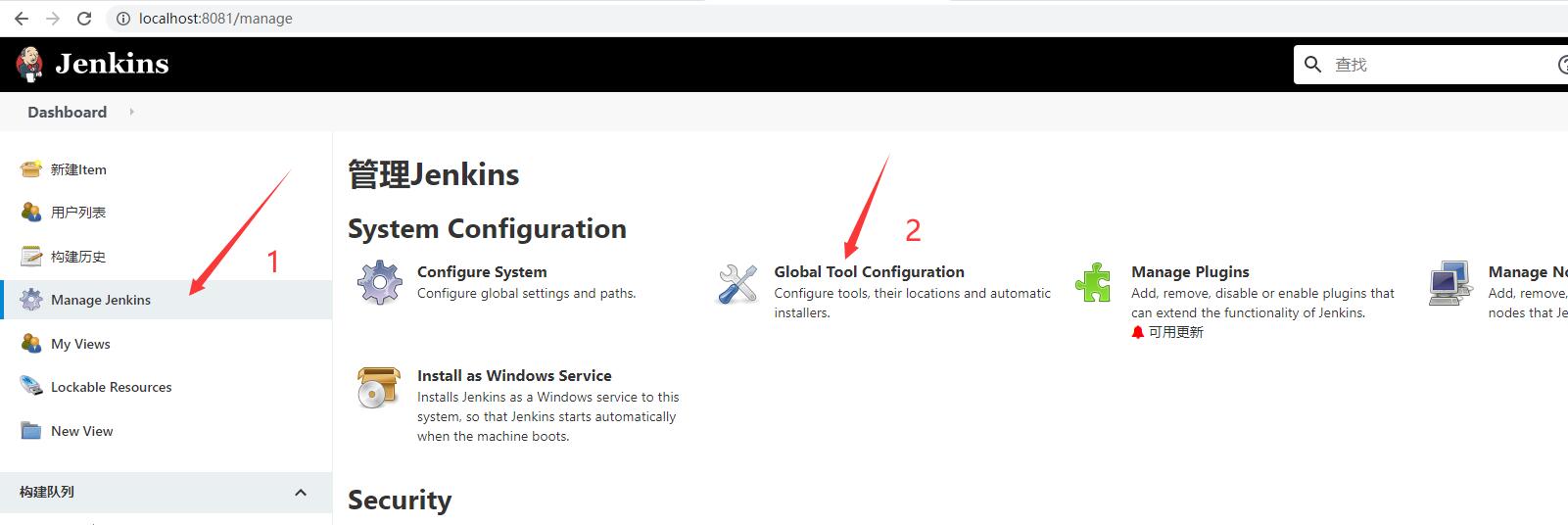 (3)点击Manager Jenkins,找到“全局工具配置”,点击进入