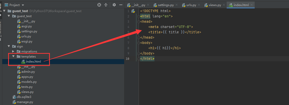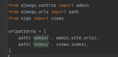 通过index/目录,将请求指向sign应用views.py视图文件中的index函数处理