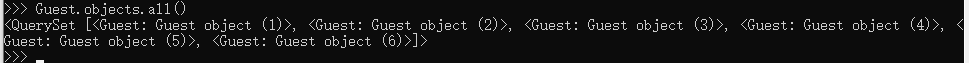 Guest.objects.all() # 获得Guest中的所有对象