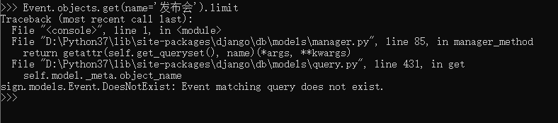 因为name='发布会'并没有完全匹配到发布会名称,所以会抛出DoesNotExist异常。