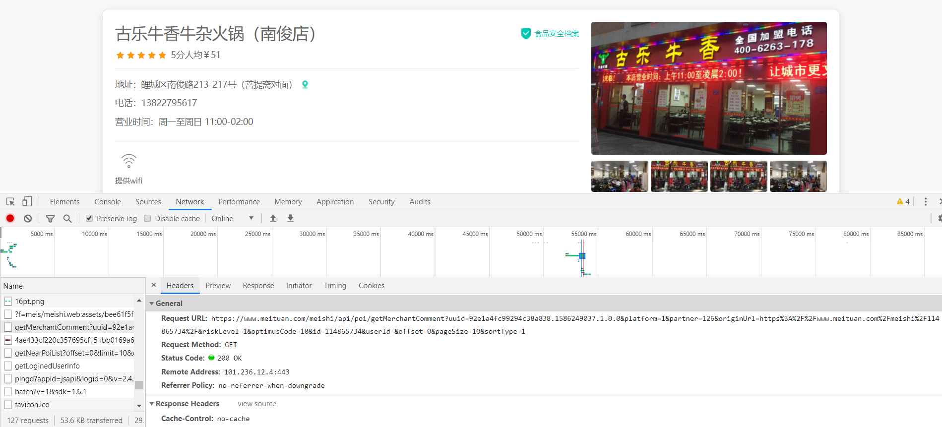 1.首先我们进入 美图平台 古乐牛香牛杂火锅(南俊店)(https://www.meituan.com/meishi/114865734/)
