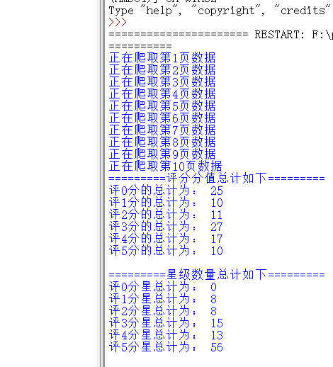'评5分星总计为:',x[5],'\n'