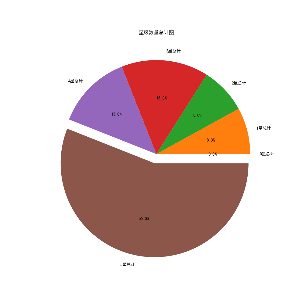#我们开始绘制星级数量总计的饼图