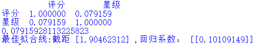 print("最佳拟合线:截距",jieju,",回归系数:",xishu)