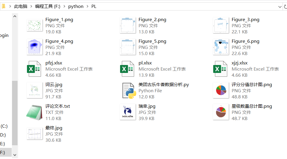 然后我们把爬取下来的数据转换成可处理的json数据,并将我们想要的数据都保存在先前定义的4个数组当中,并将数据全部存储到F:\\python\\PL//pl.xlsx中