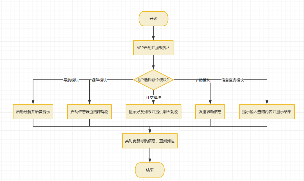 应用层:即盲人出行APP的前端界面,提供用户交互功能,如语音输入目的地、语音播报导航信息、紧急求助按钮等。界面设计要简洁易懂,操作便捷,符合盲人的使用习惯。