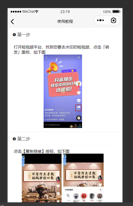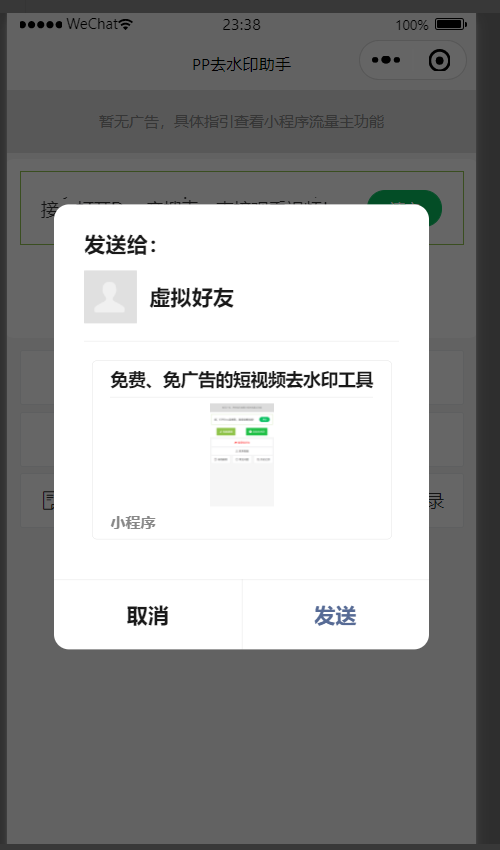 在此界面中用户可以分享自己去掉水印的短视频给自己的好友
