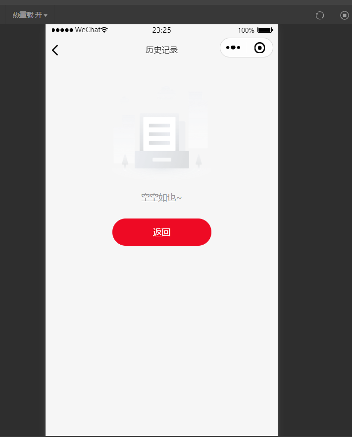 在此界面中能够查看使用小程序的历史记录功能。通过点击“历史记录”按钮进入常见问题界面。