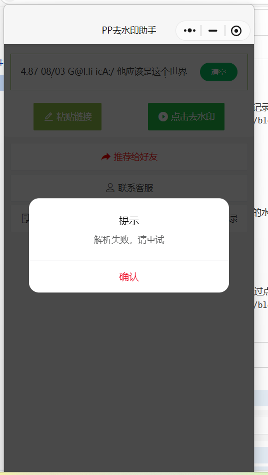 在此界面中用户能够实现讲抖音短视频的水印去除功能。先点击“粘贴链接”按钮将复制粘贴的视频链接粘贴到输入框中,再点击“点击去水印”按钮,即可去除水印。