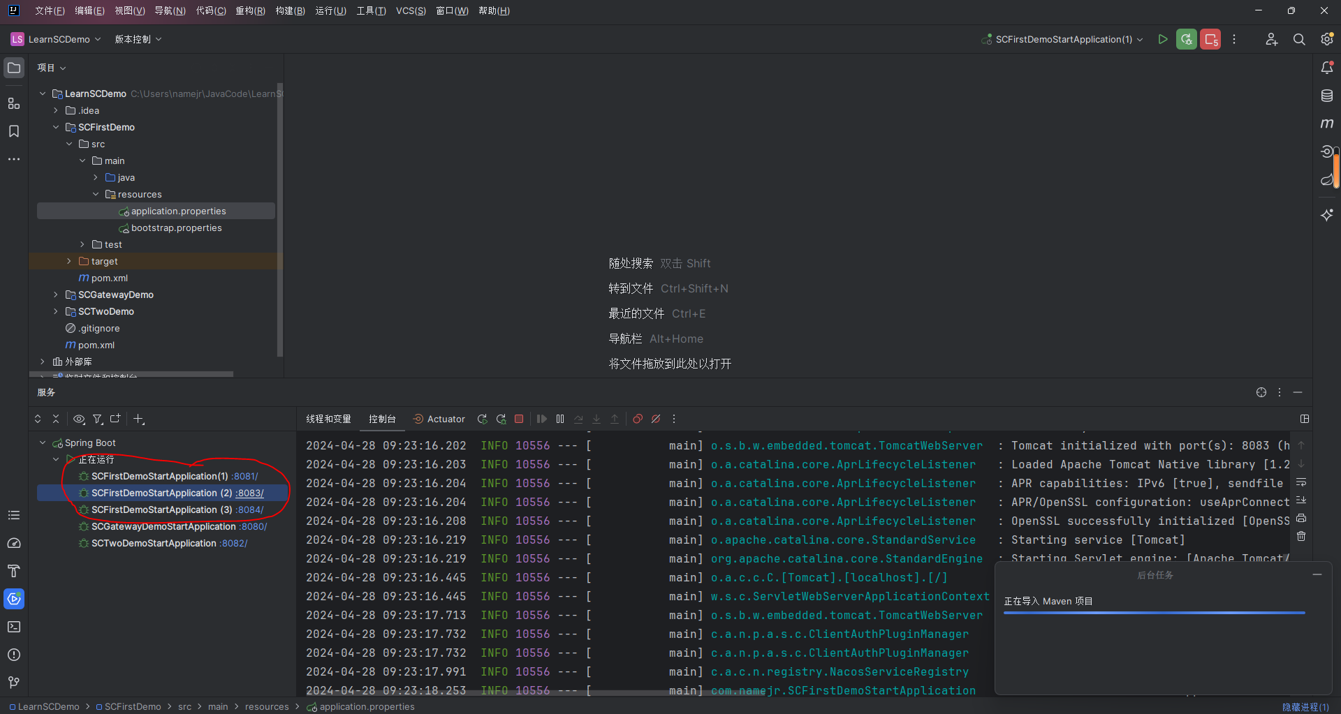 4.分别启动NAacos,如果出现下面(红色部分)信息即可表示成功
