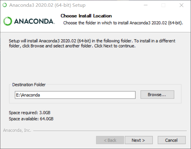 选择安装的地方,Anaconda安装后有5~6G,注意选择一个较大的空间。