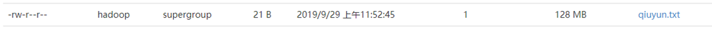 1 //文件上传 2 @Test 3 public void testCopyFromLocalFeil() throws IOException, InterruptedException, URISyntaxException { 4 5 //获取对象 6 Configuration conf = new Configuration(); 7 FileSystem fs = FileSystem.get(new URI("hdfs://192.168.12.161:9000"), conf, "hadoop"); 8 9 //执行上传API 10 fs.copyFromLocalFile(new Path("d:/Hadoop/HDFS/zxc.txt"), new Path("/qiuyun.txt")); 11 12 //关闭资源 13 fs.close(); 14 15 }