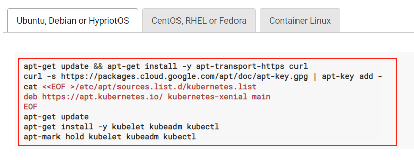 cat <<EOF >/etc/apt/sources.list.d/kubernetes.list deb https://apt.kubernetes.io/ kubernetes-xenial main EOF