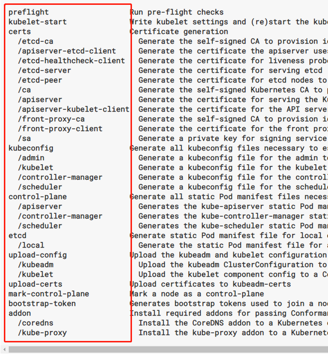 kubeadm init这个命令的参数非常多,官方给出的全部参数如下: