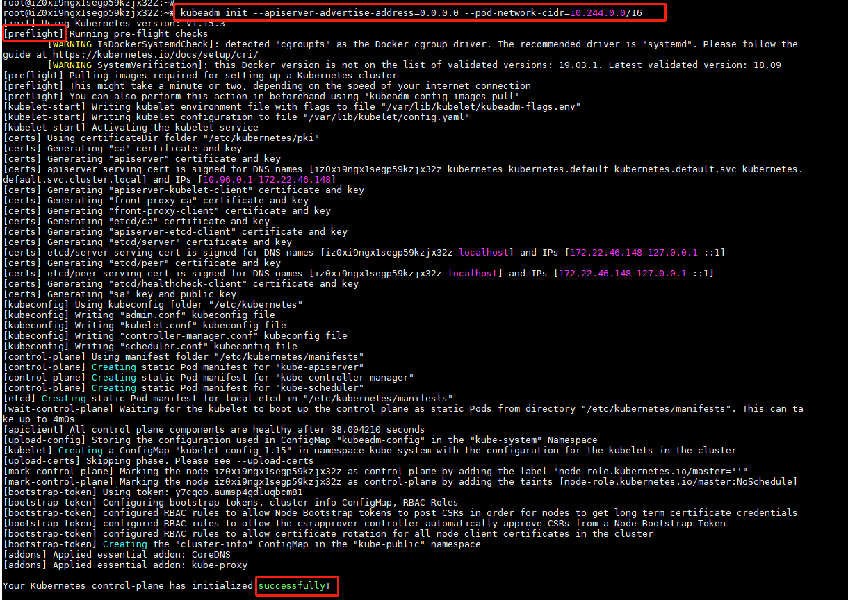 kubeadm init --apiserver-advertise-address=0.0.0.0 --pod-network-cidr=10.244.0.0/16