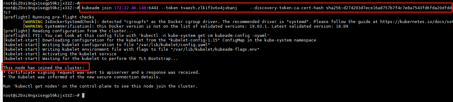 如果忘记了刚才master节点给出的hash信息,可以执行以下命令重新获取