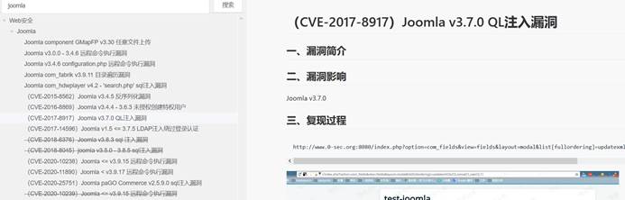 通过joomla的扫描脚本,扫描到了joomla的版本号为:3.7.0 该版本存在了sql注入漏洞