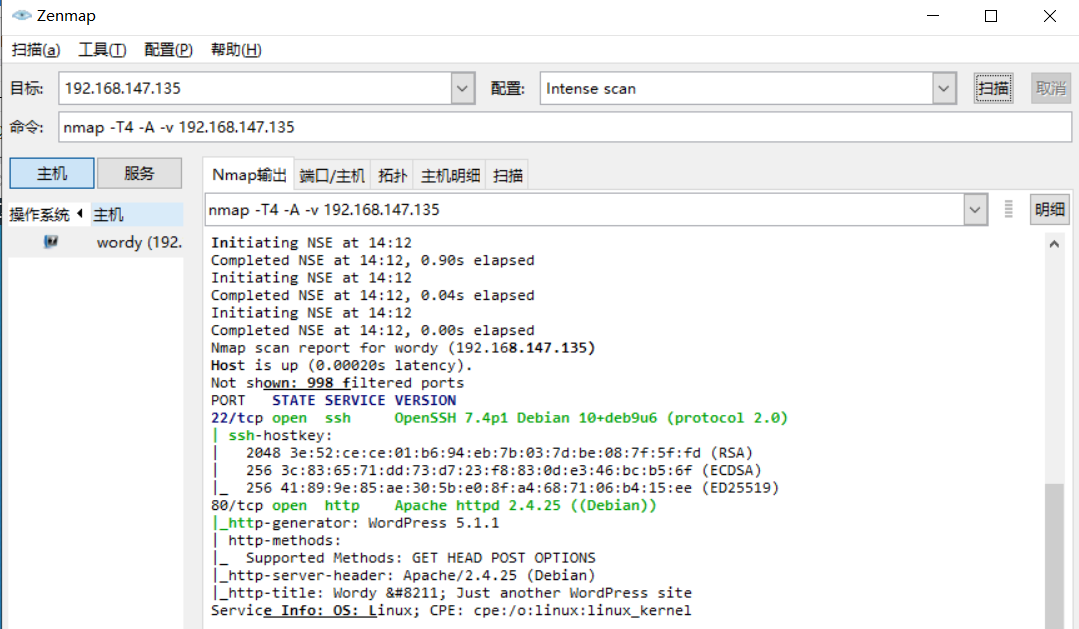 首先得到ip扫描一下端口号,得知靶机开放的是22,80端口