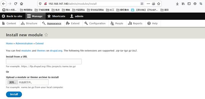 成功登录后台,通过百度搜索,drupal后台部署拿webshell