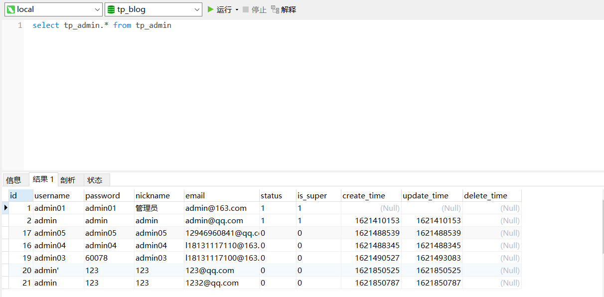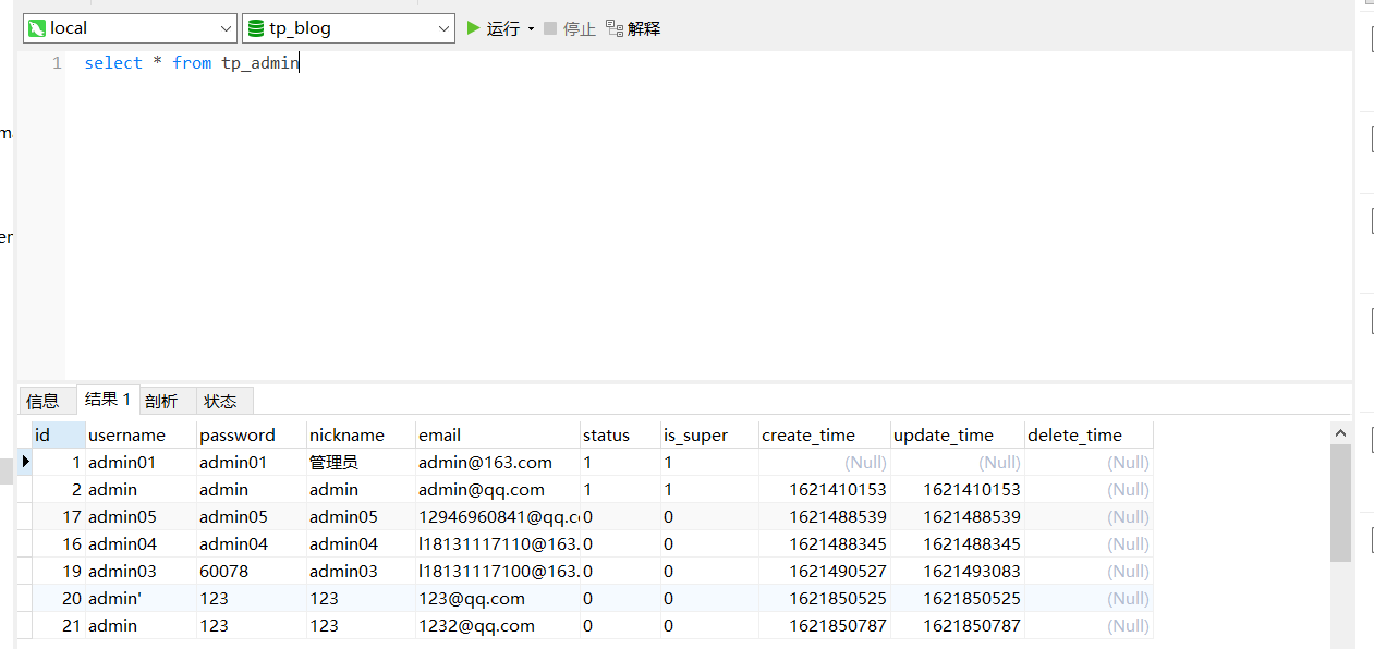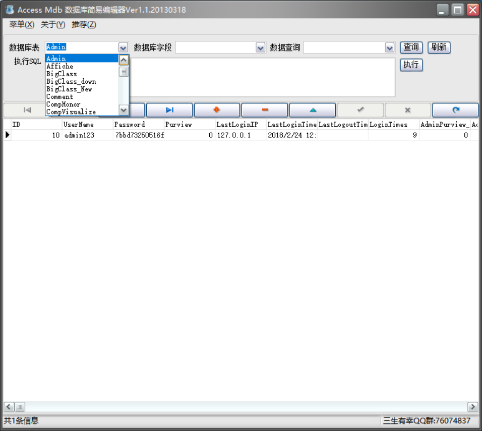 Admin的表的字段数同样也是3个把admin.*替换1,2,3
