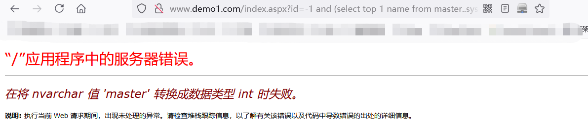 -1 and (select top 1 name from master..sysdatabases where name not in (‘master’))>0