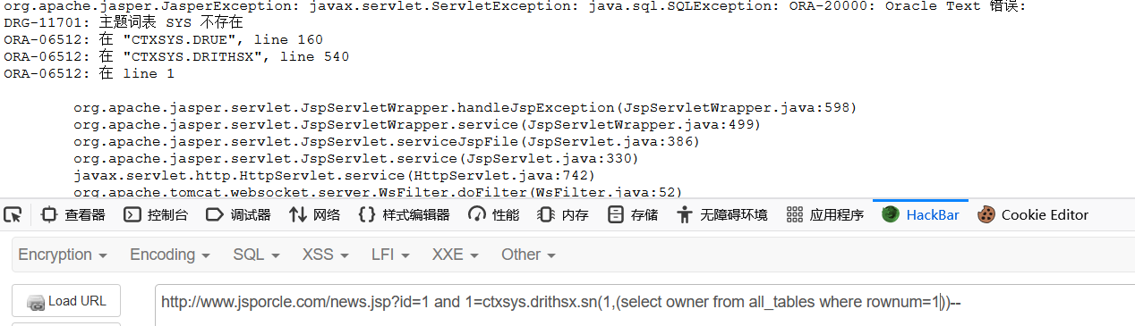 and 1=(select decode(substr((select owner from all_tables where rownum=1),3,1),'S',1,0) from dual) --