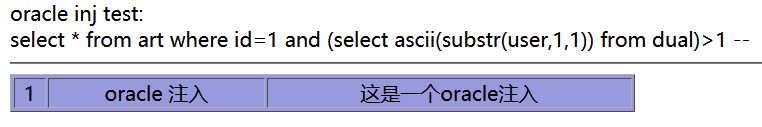 And (select ascii(substr(user,1,1)) from dual)>1 --