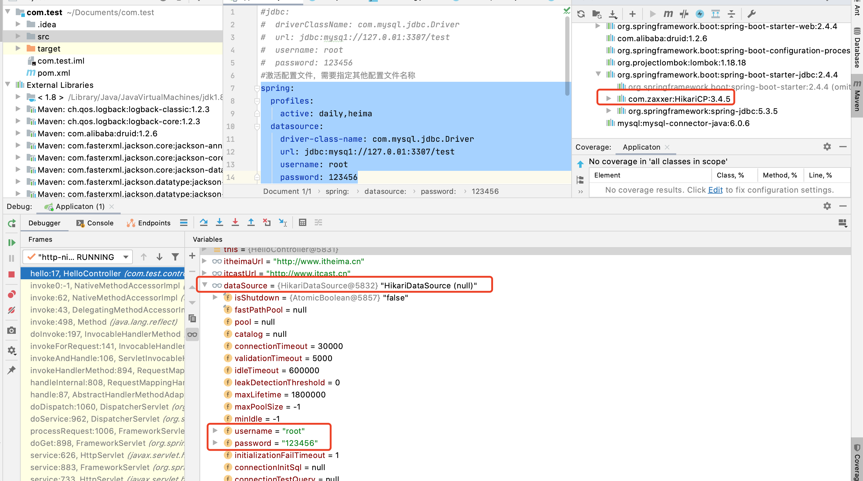 ●数据库连接池使用默认的hikarl,在配置文件中配置