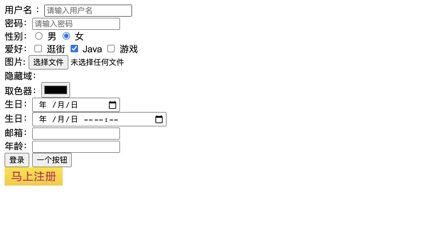 爱好:<input type="checkbox" name="hobby" value="shopping"> 逛街