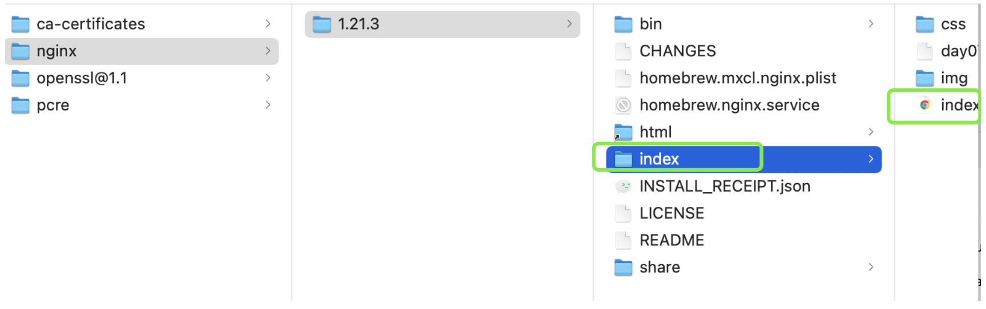 1、在终端输入open /opt/homebrew/Cellar/nginx 进入静态资源目录,将事先写好的 html文件放置在 index目录下,如图所示