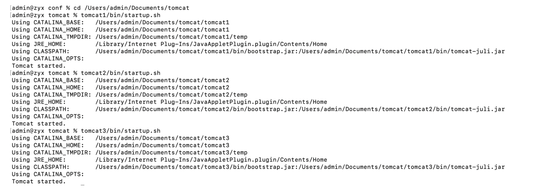 进入tomcat 配置目录:cd /Users/admin/Documents/tomcat/tomcat3/conf