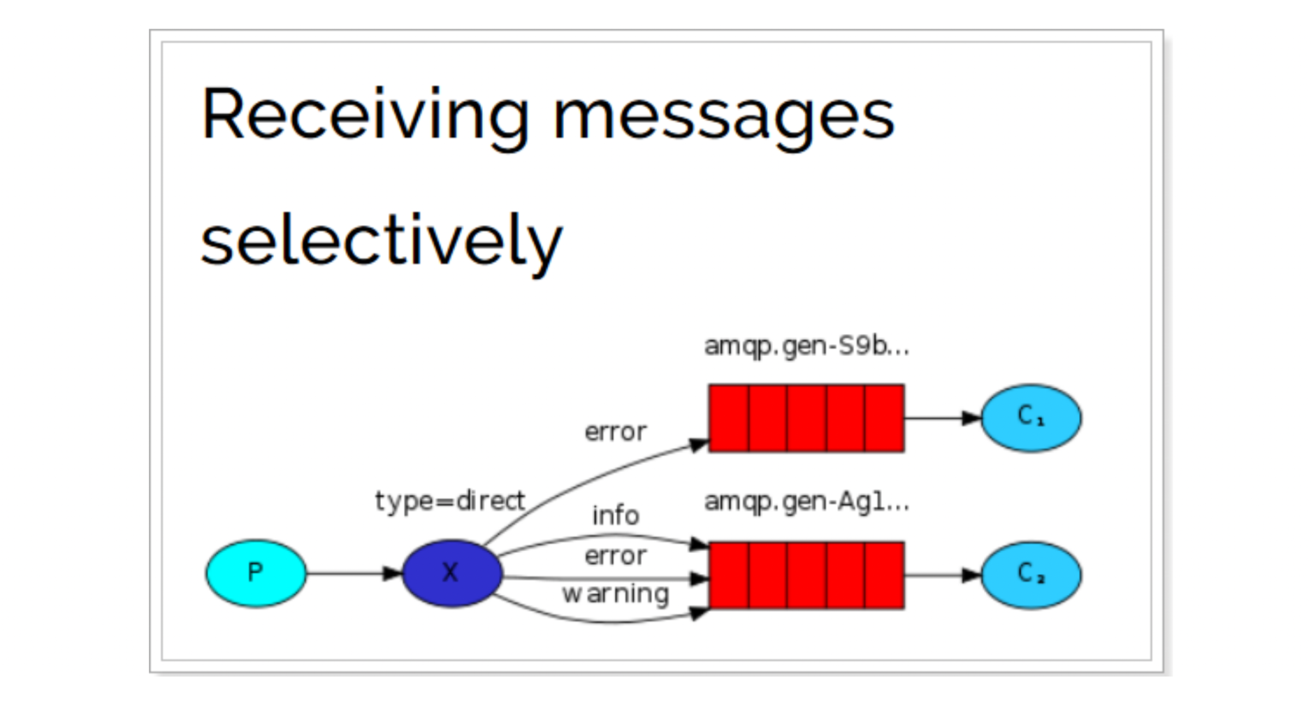 C2:消费者,其所在队列指定了需要routing key 为 info、error、warning 的消息