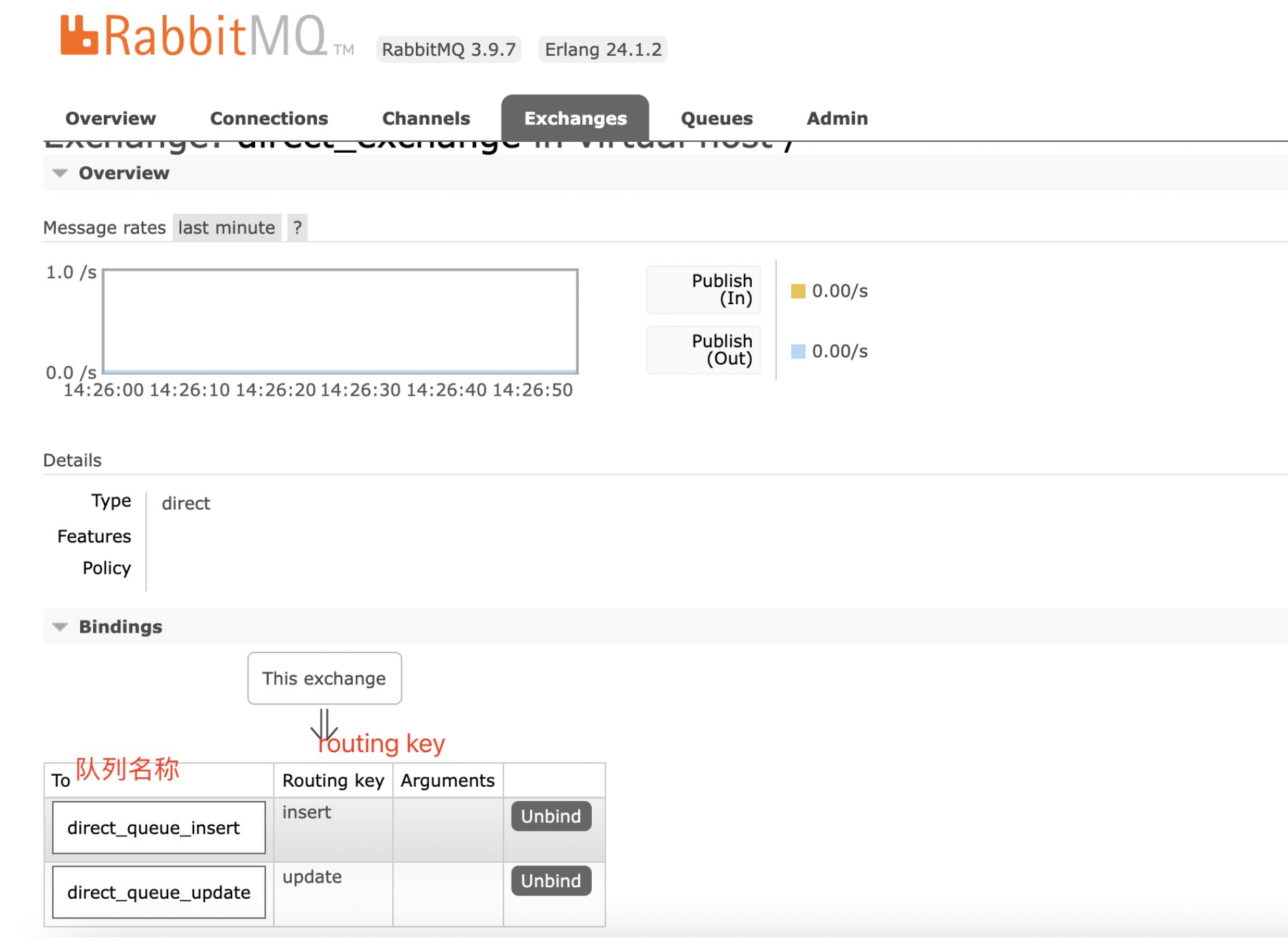 rabbit后台 点击名字为 direct_exchange 进入 页面,发现与代码一致