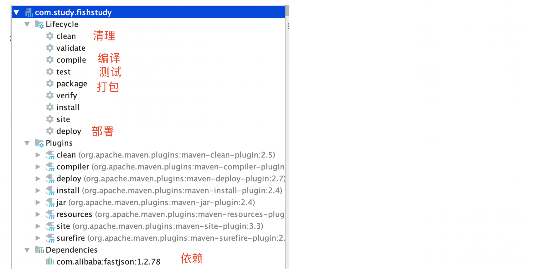 使用 maven 完成项目的构建,项目构建包括:清理、编译、测试、部署等过程,maven 将这些过程规范为一个生命周期,如下所示是生命周期的各个阶段: