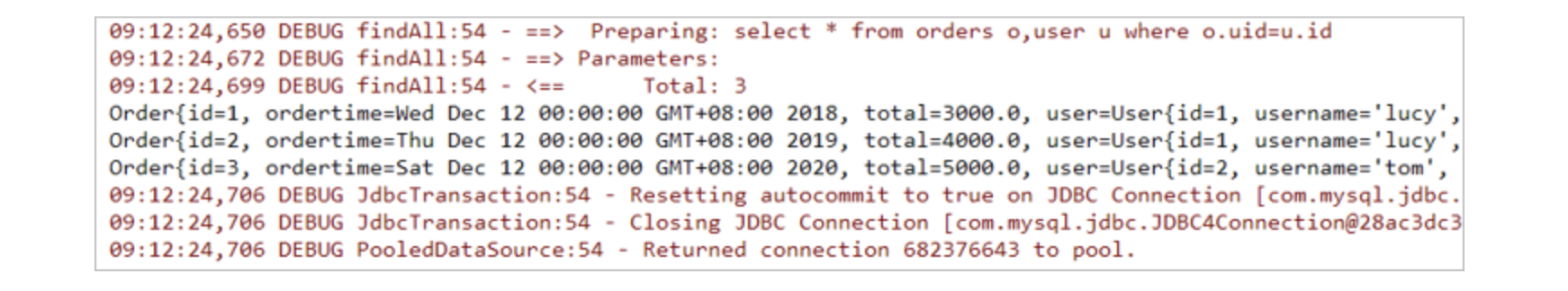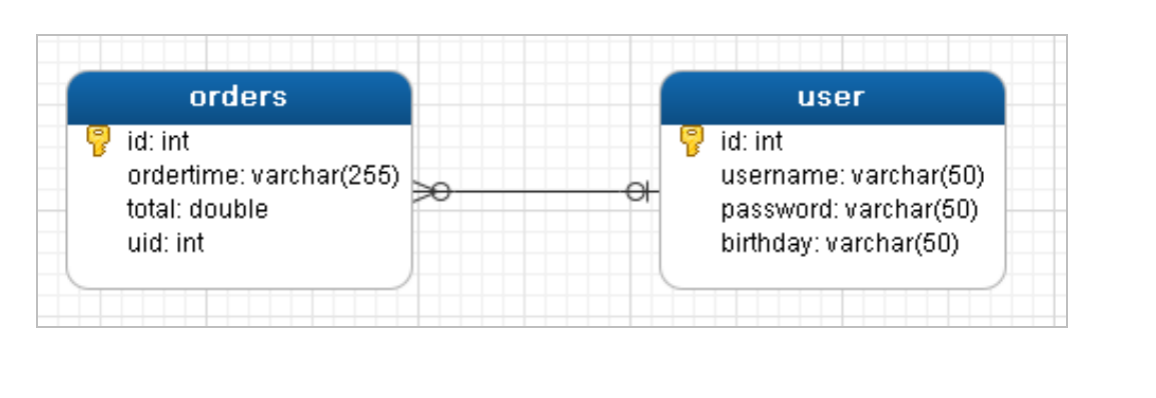 对应的sql语句:select * from orders o,user u where o.uid=u.id;